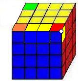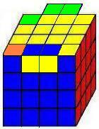 Igual que el cubo 3x3x3, el cubo 4x4x4 se compone también de centros, aristas y esquinas pero con algunas diferencias: cada centro está compuesto por 4 piezas y las aristas por 2 piezas, además los centros no se encuentran fijos por lo que hay que estar atentos a su posición correcta. Estando la cara blanca arriba y la amarilla abajo los centros siguen el orden naranja, verde, rojo y azul. Se hallan opuestos pues el blanco y amarillo, naranja y rojo y verde con azul. Las piezas de cubo son: |