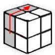 La forma más sencilla es la del caso 1 llevando los vértices a girar a la derecha. Podemos mover el cubo si es necesario para que dos de sus caras (colocadas siempre a la derecha) tengan el mismo color |
