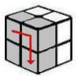 Una vez completada la capa superior damos la vuelta al cubo. Como la capa ordenada era blanca ahora tendremos arriba la capa amarilla. Nos podemos encontrar con cuatro casos: ningún amarillo, 1,2,3, o 4 en el mejor de los casos. No importa, repetiremos esta secuencia de movimientos llevando cada vértice a ordenar al frente a la derecha SIN MOVER LA CAPA INFERIOR. La capa blanca se descompone pero al finalizar estará bien ordenada. |