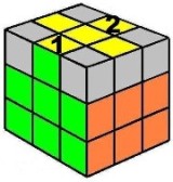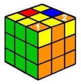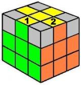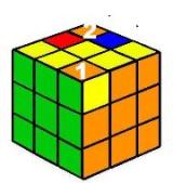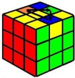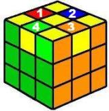 | Este último movimiento, a pesar de su simplicidad, es el más delicado. Hay que repetir el proceso varias veces para el mismo vértice. Una vez colocado el primero el cubo se desordena totalmente, giramos la capa superior para colocar cada vértice delante y a la derecha (posición del 4). Siempre hay que girar al menos 2 vértices. El cubo no se debe girar, solo la capa superior. El cubo quedará terminado. |